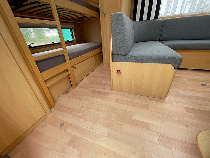 Placera mattan på golvet med undersidan uppåt. Mät och markera de nödvändiga hörnen. Använd exempelvis en rak bräda som stöd vid klippningen.